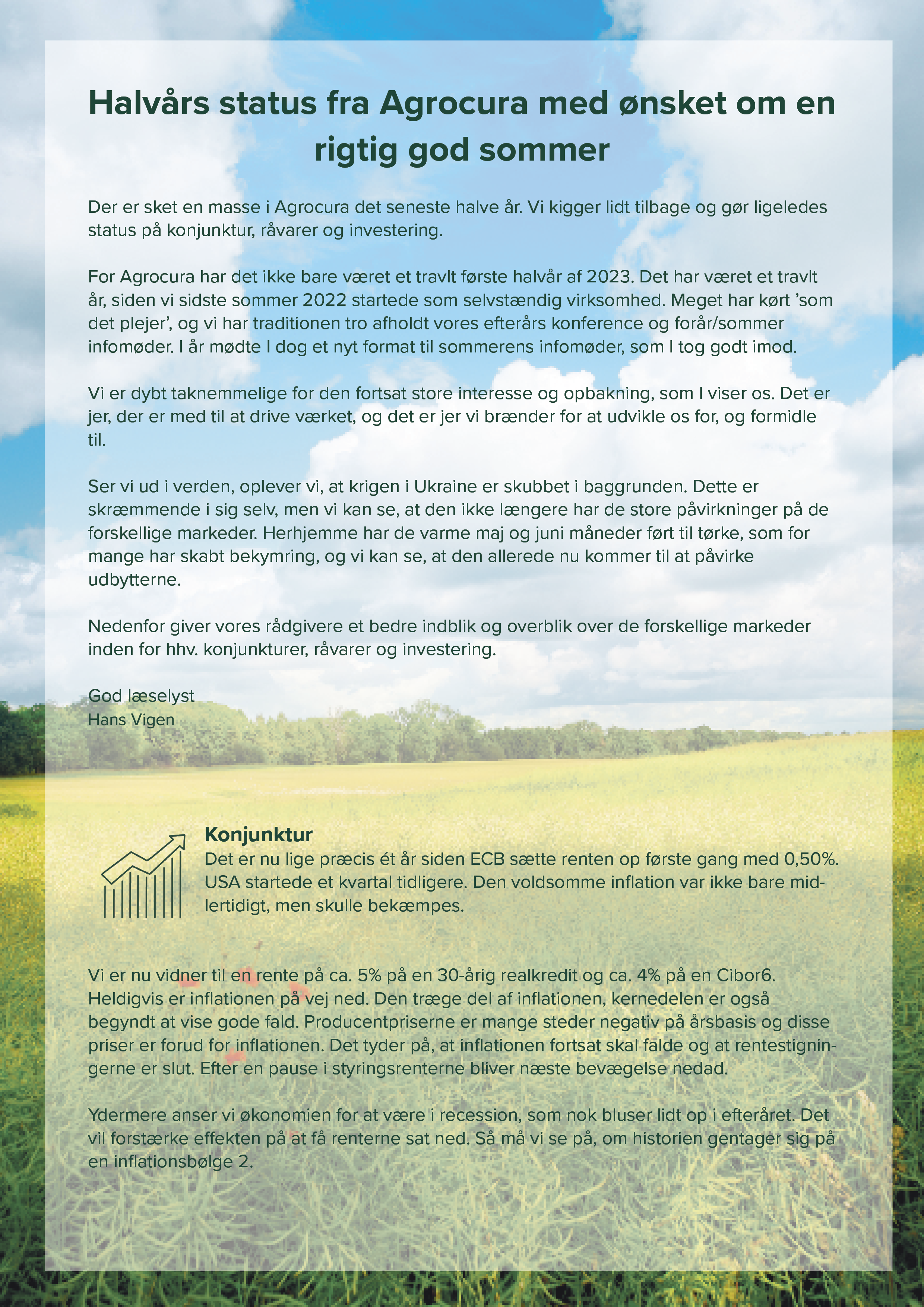 Der er sket en masse i Agrocura det seneste halve år, så vi kigger lidt tilbage og gør status på konjunktur, investering og råvarer.